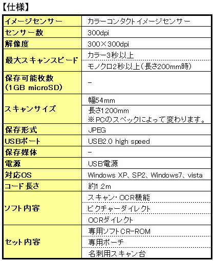 ■読み取り可能幅:54mm ■読み取り可能長さ:最大1200mm ■商品サイズ(約):幅9.1×奥行き2.75×高さ2cm ■重量:約42g ■材質:ABS、塗装